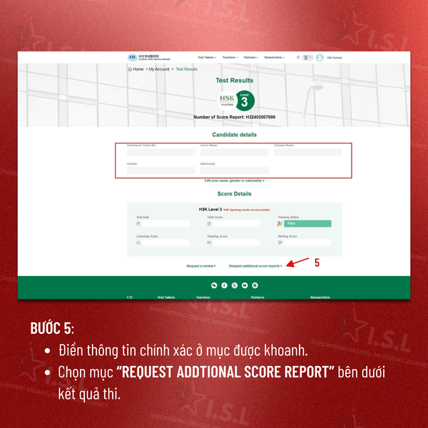 BƯỚC 5: Điền thông tin vào mục khoanh, rồi chọn “REQUEST ADDTIONAL SCORE REPORT"