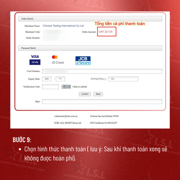BƯỚC 9: Chọn hình thức thanh toán ( lưu ý: Sau khi thanh toán xong sẽ không được hoàn phí).
